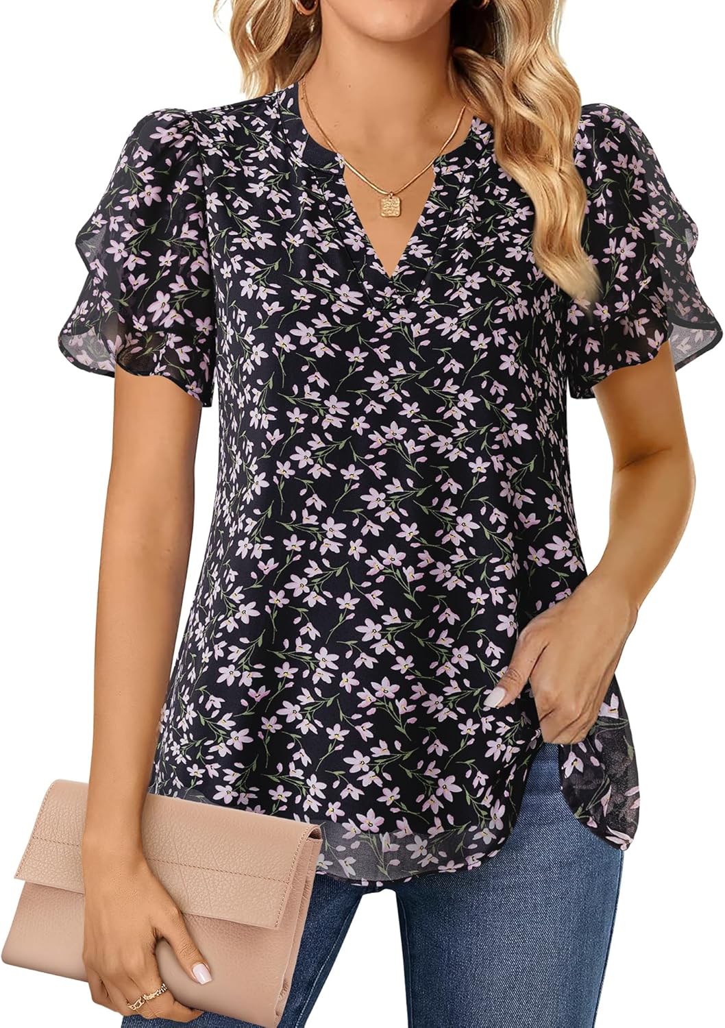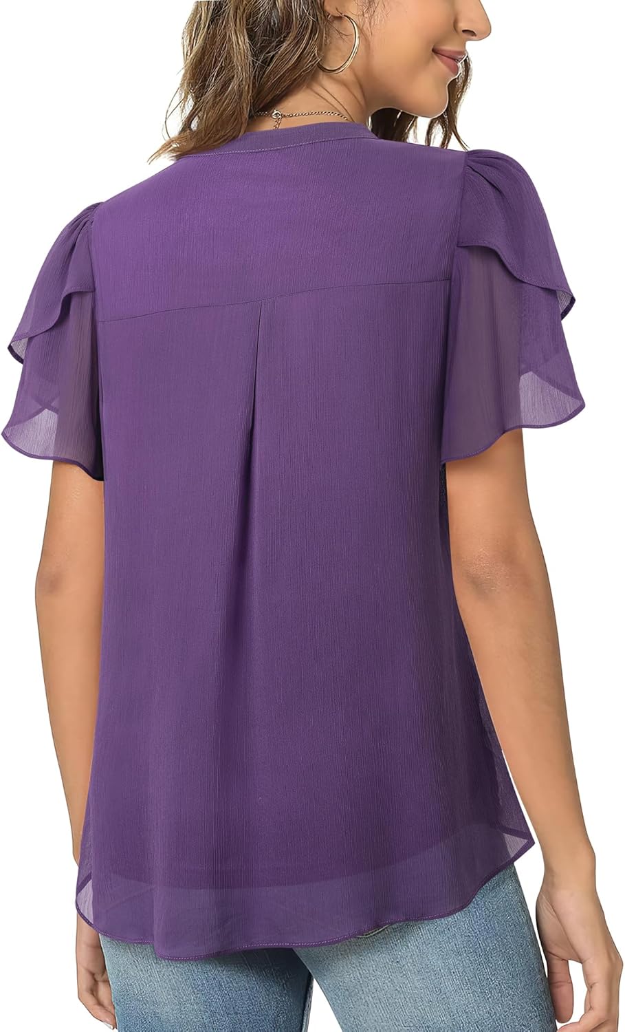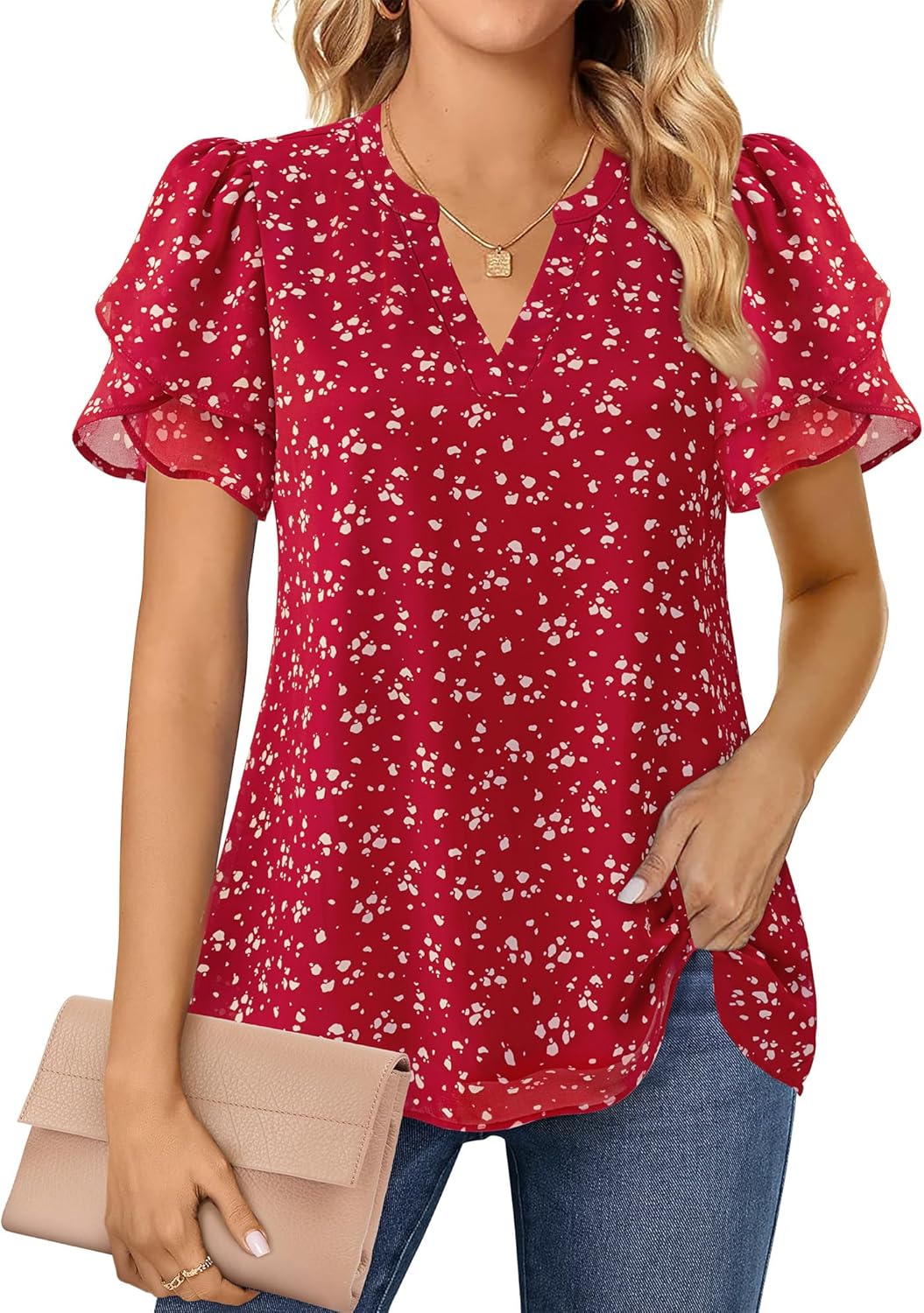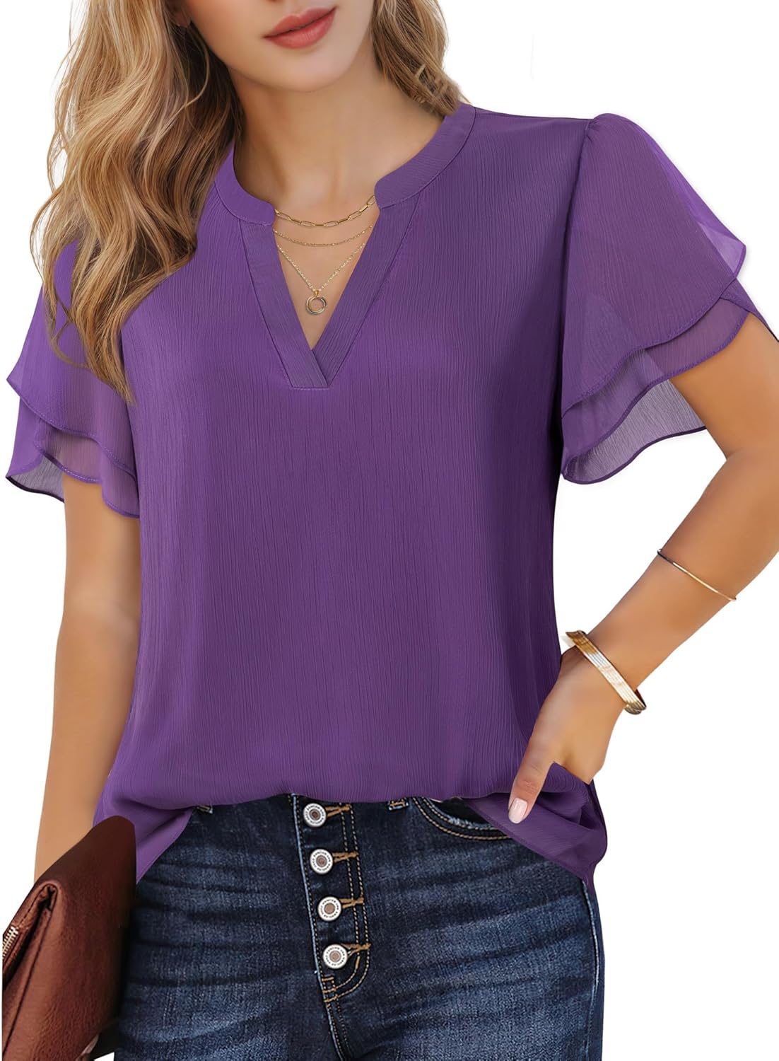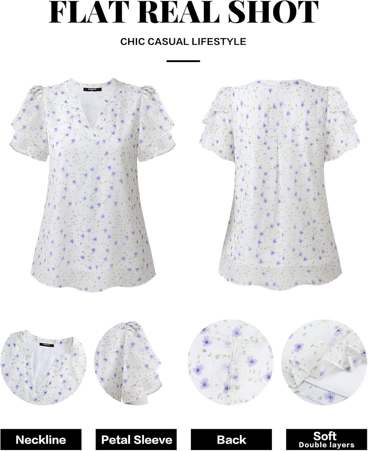 - EXQUISITE PETAL PUFF SLEEVE - Fashionably hot-selling petal sleeve features an irregular multi-layer design, and the shoulder's pleated craftsmanship presents a more three-dimensional sleeve shape, giving the sleeve a unique look with a hint of puff sleeve charm, enhancing the overall style of the dressy tops for women and adding liveliness and delicacy, emitting strong visual impact and allure. The lightweight and breathable properties make it particularly suitable for summer wear